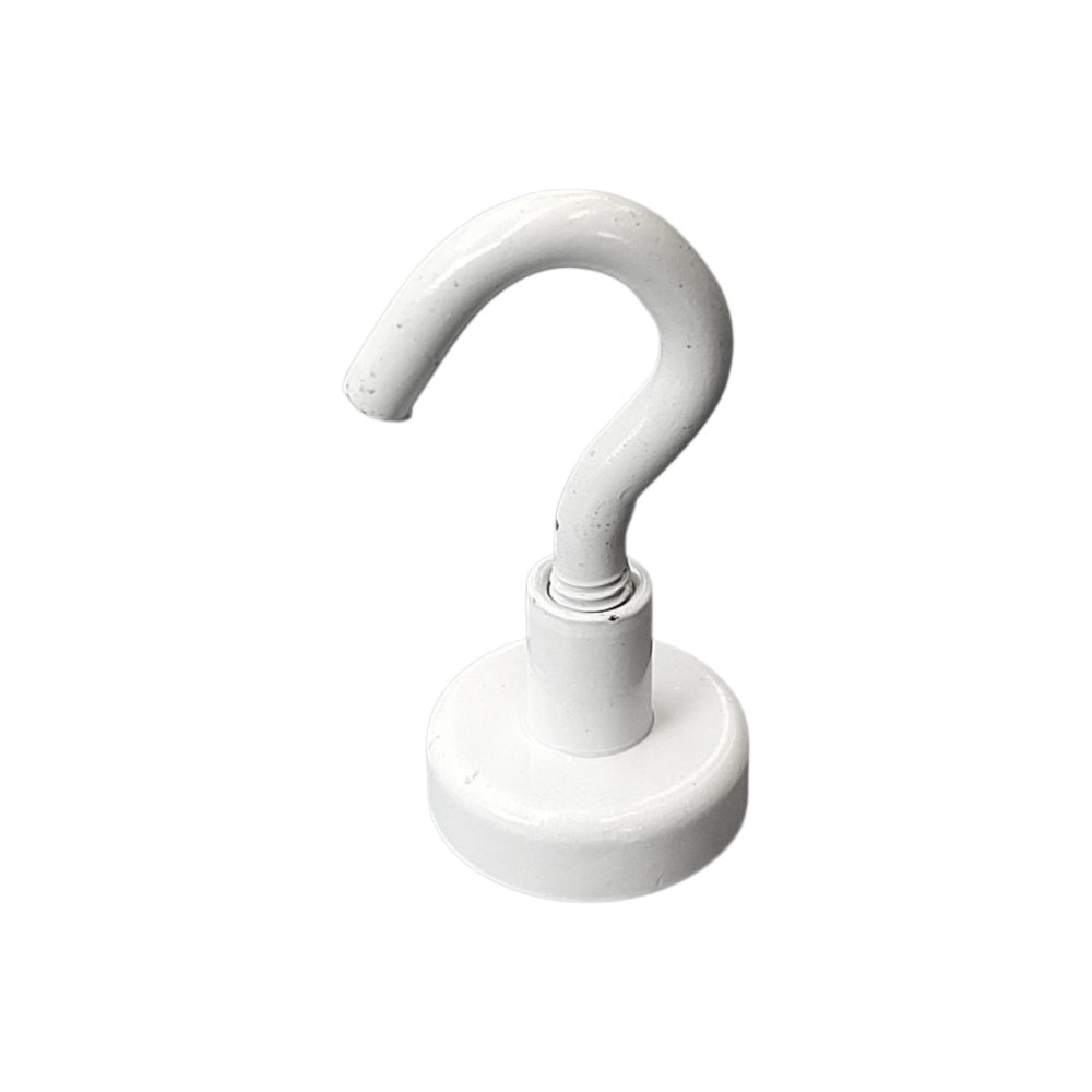 16mm Pot Magnet with Hook - White Painted (Rare Earth)