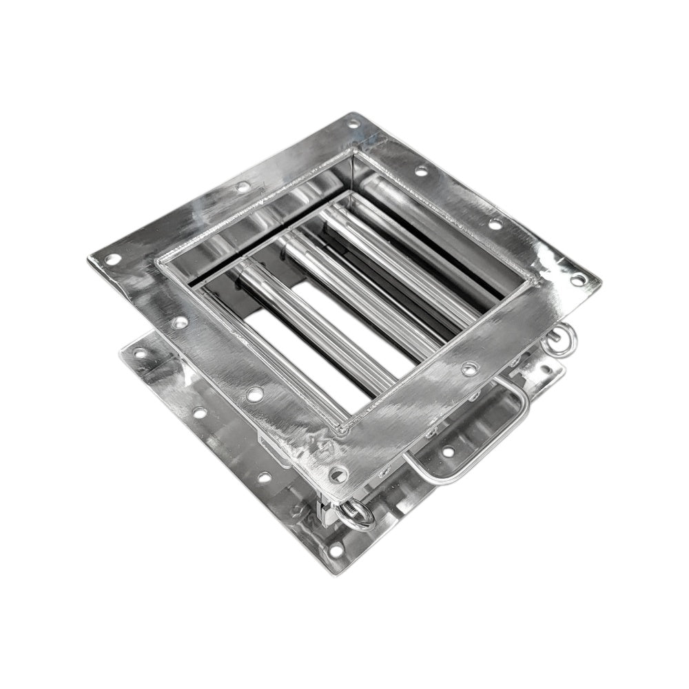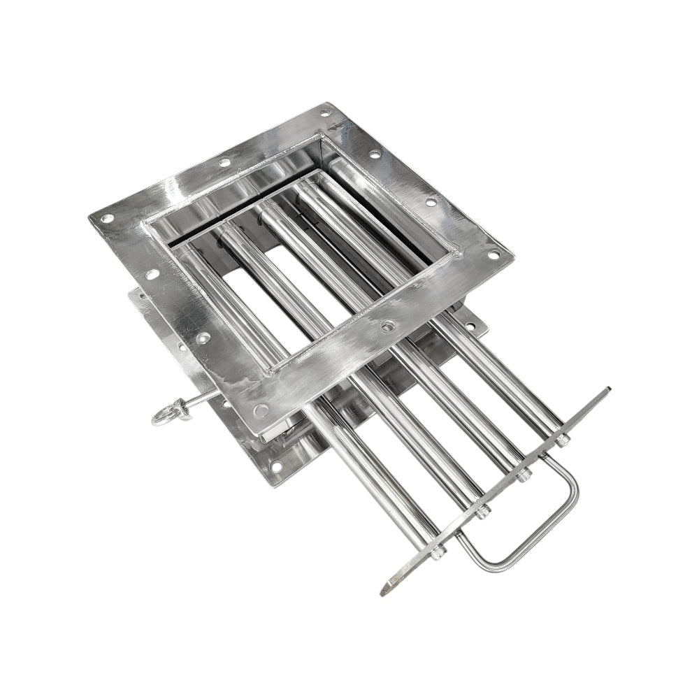 This 260 × 260 mm self-cleaning drawer-type grate magnet provides powerful 10,000 Gauss separation performance in a compact, user-friendly design. Built from durable stainless steel, the unit features a sliding drawer mechanism that allows the magnetic bars to be quickly withdrawn for cleaning—no tools or dismantling required.