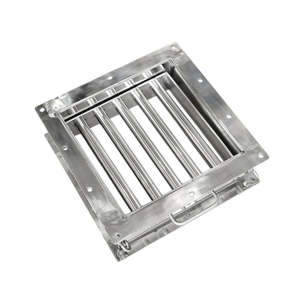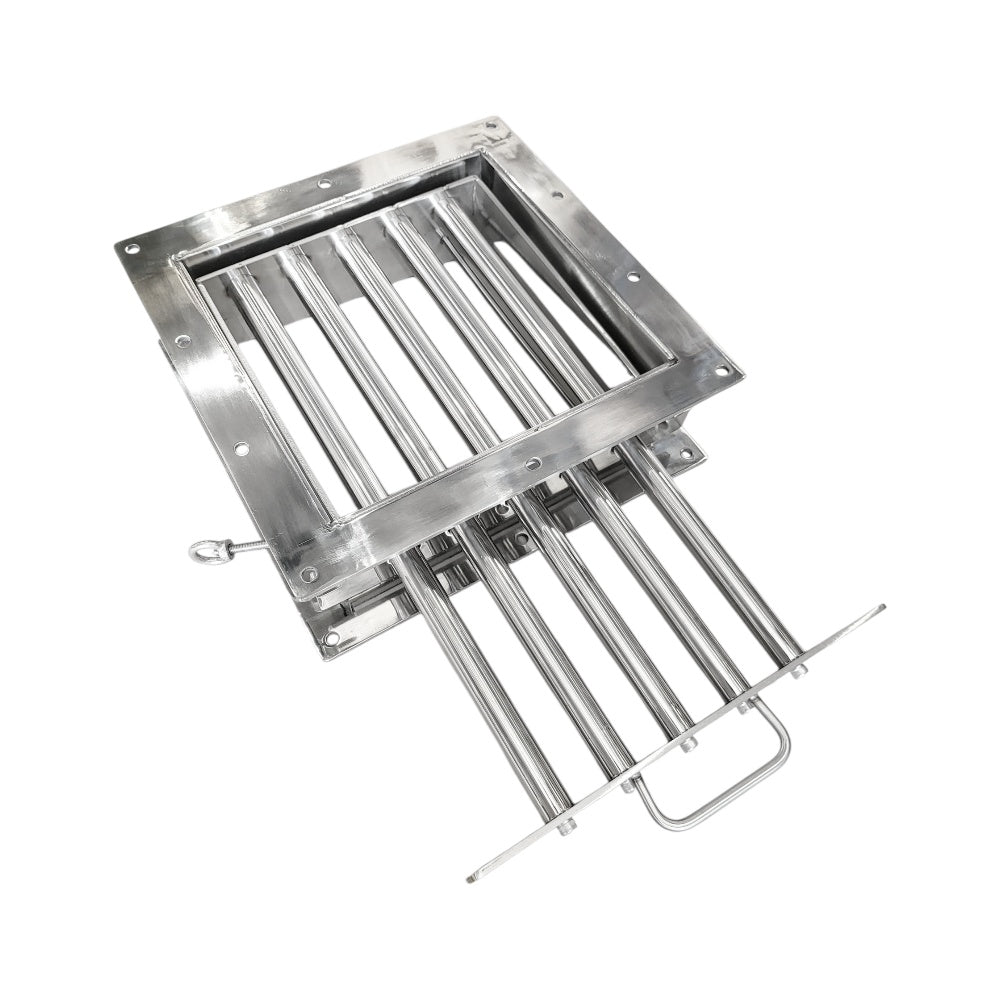This 310 × 310 mm self-cleaning drawer-type grate magnet provides powerful 10,000 Gauss separation performance in a compact, user-friendly design. Built from durable stainless steel, the unit features a sliding drawer mechanism that allows the magnetic bars to be quickly withdrawn for cleaning—no tools or dismantling required.